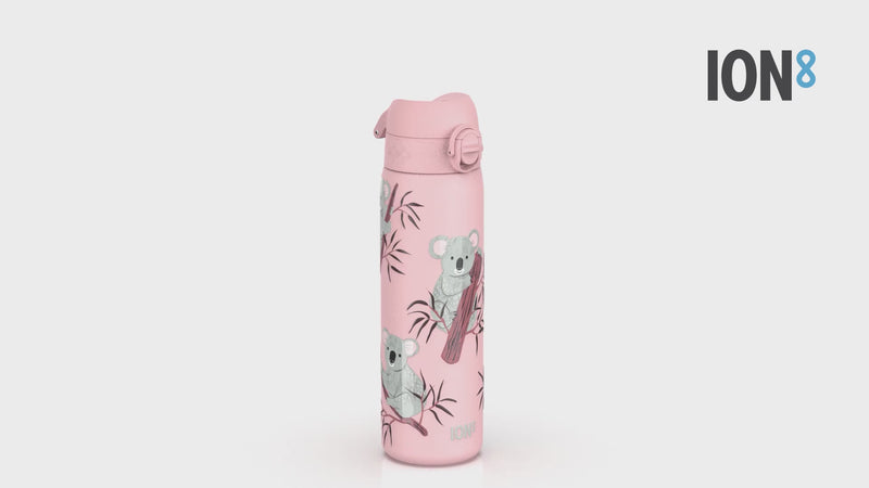 100% leak proof 500ml / 17oz vacuum insulated double wall stainless steel water bottles with a smooth flow for spill-free hydration and hygienic flip top cover for one handed use on-the-go. Keeps hot drinks hot and cold drinks icy cold and fresh for hours.