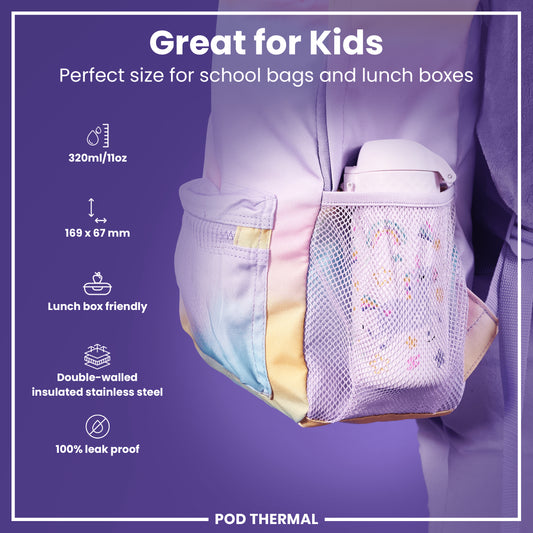 The Unicorn Pod Bottle is lightweight, durable, and ideal for little hands. With a one-touch flip lid, triple-lock security, and a comfortable grip, kids can drink independently—no leaks or spills. BPA-free, dishwasher safe, and made from carbon-neutral stainless steel, it's perfect for daily use.