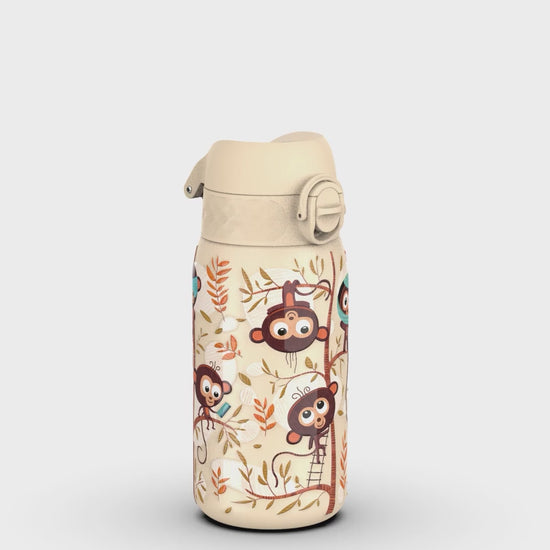 Leak Proof Kids Water Bottle, Stainless Steel, Monkeys, 400ml (13oz)