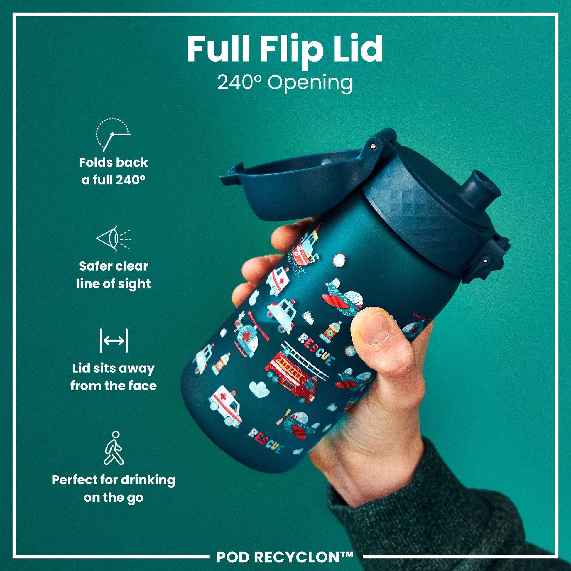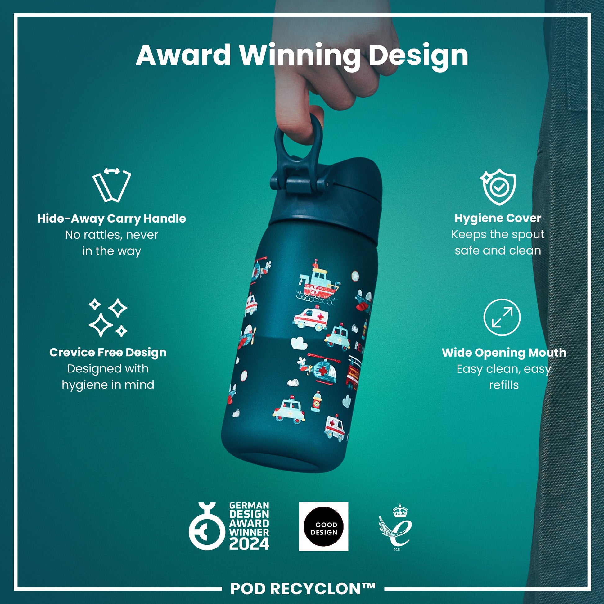 Leak Proof Kids Water Bottle, Recyclon, Rescue Vehicles, 350ml (12oz)