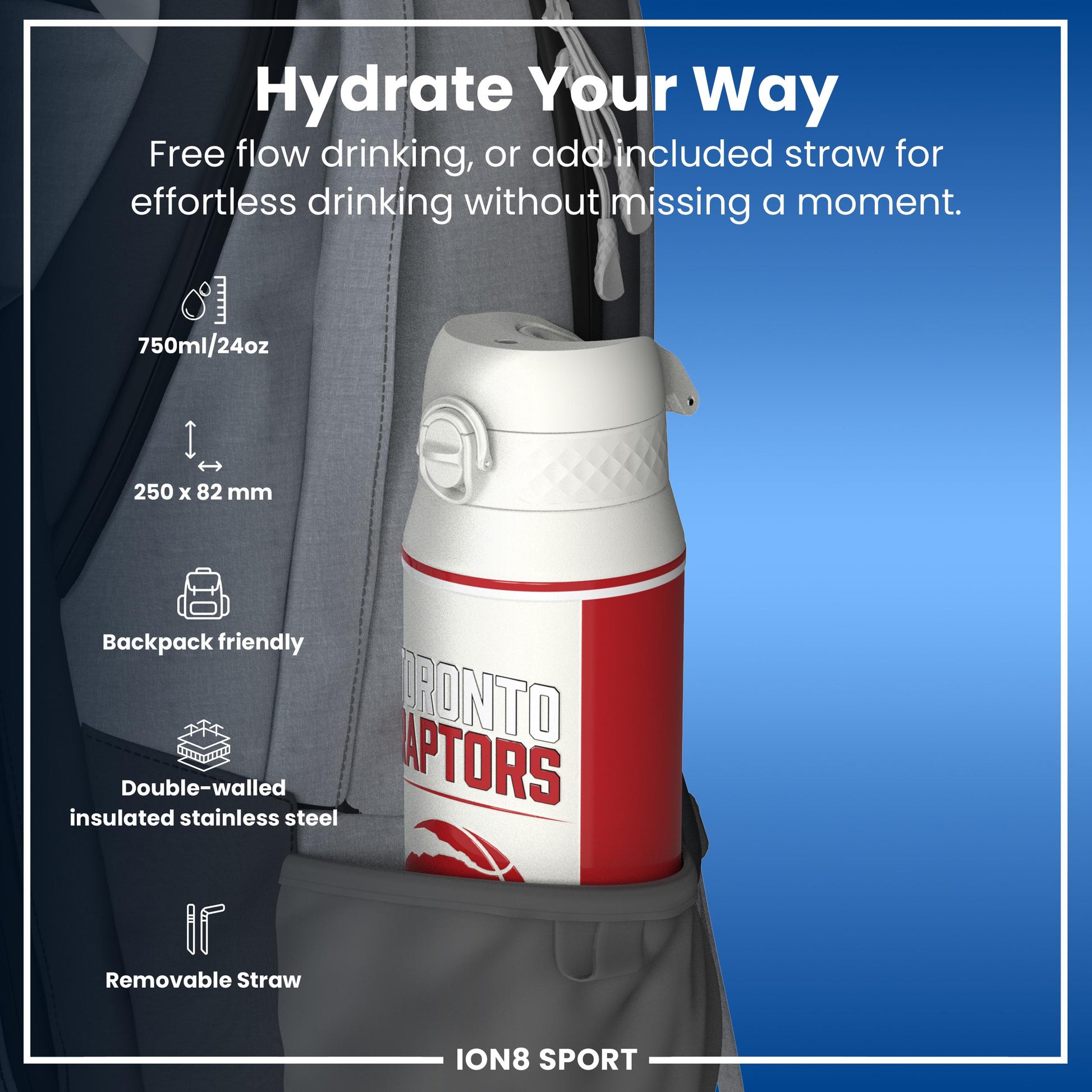 NBA x Ion8 Sports, Insulated Bottle, Toronto Raptors, 750ml (24oz)