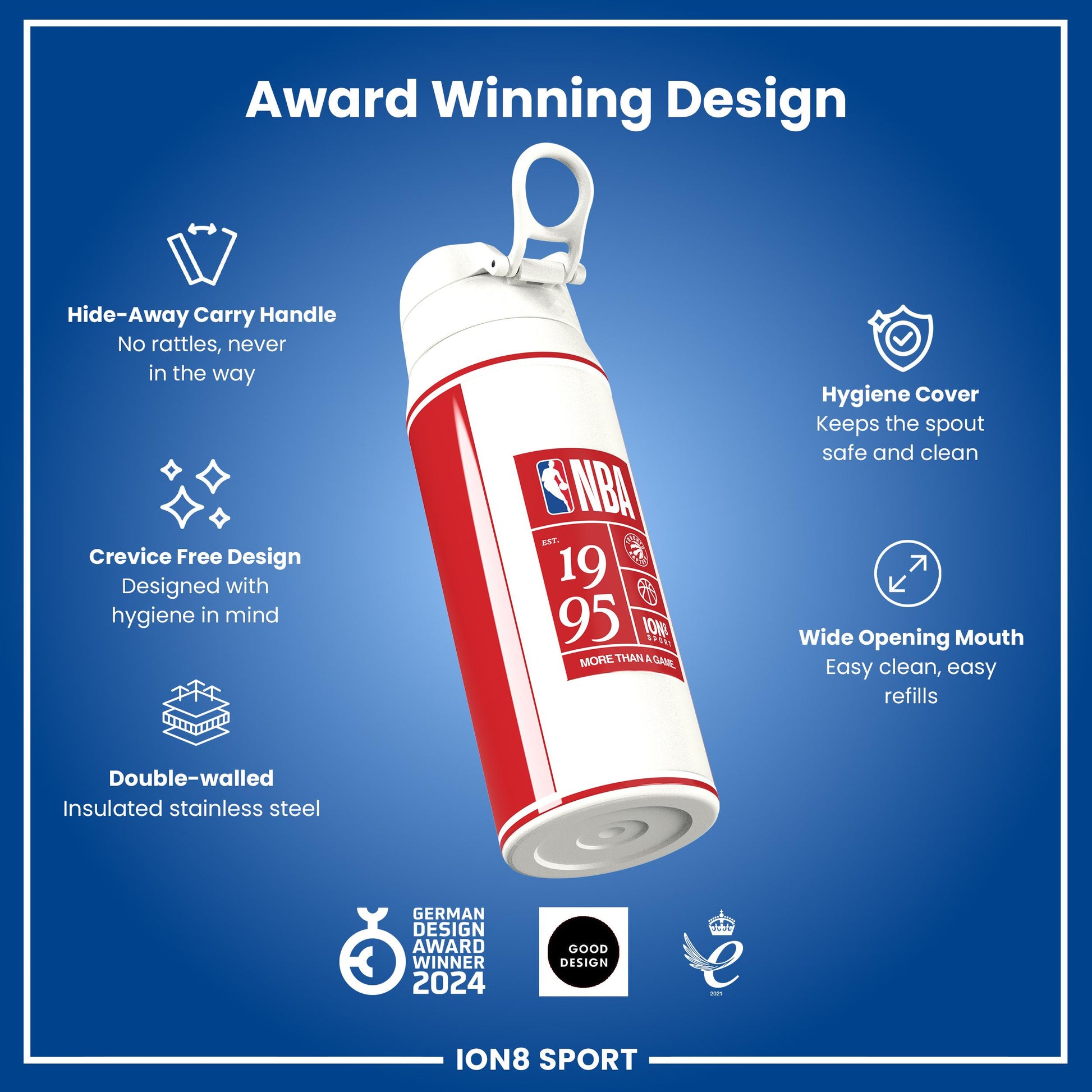 Raise your game with the Official NBA Thermal Insulated Bottle by ION8. Designed to meet the uncompromising standards of NBA, this 750ml double-wall stainless steel bottle combines premium performance with unmistakable NBA pride.