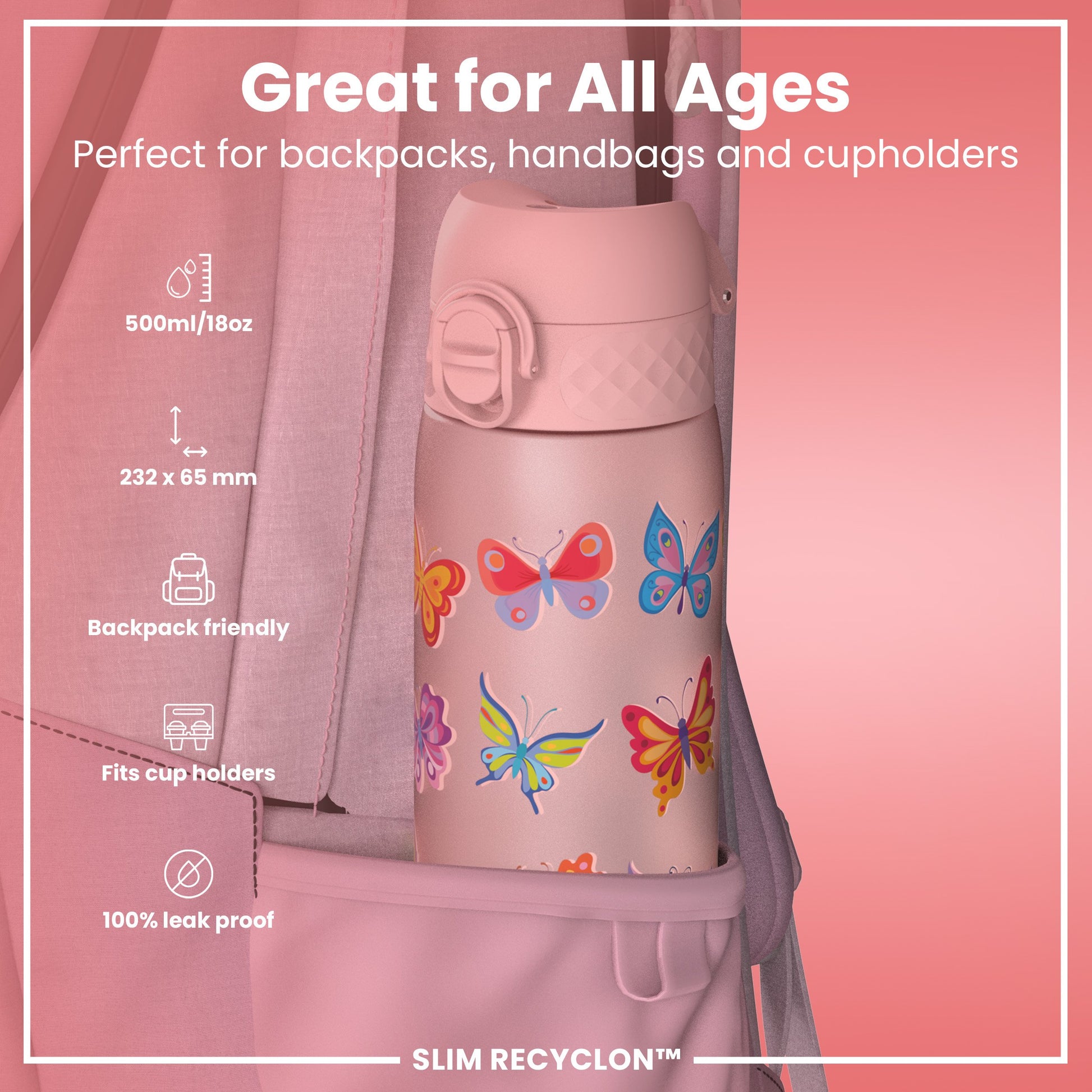 Leak Proof Slim Water Bottle, Recyclon, Butterfly, 500ml (18oz)