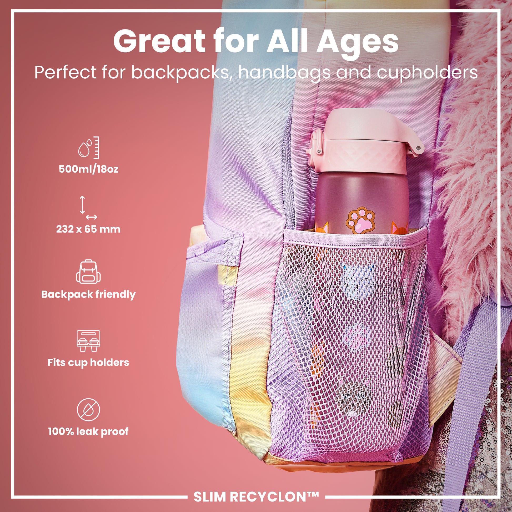 Leak Proof Slim Water Bottle, Recyclon, Cats, 500ml (18oz)