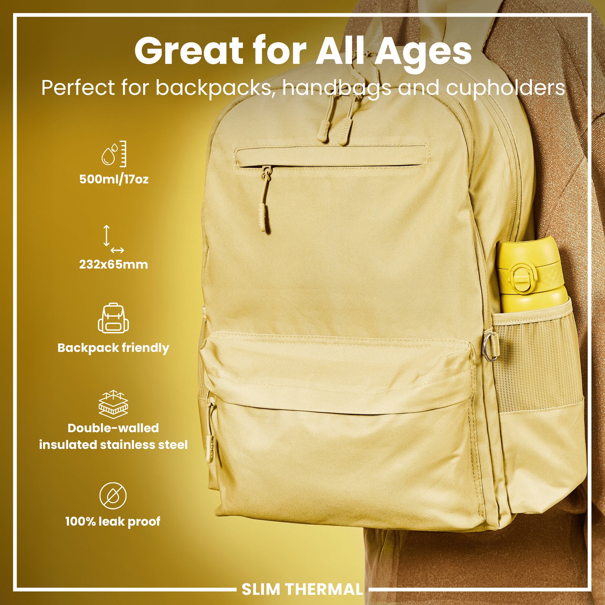 Leak Proof Slim Thermal Steel Water Bottle, Insulated, Yellow, 500ml (17oz)