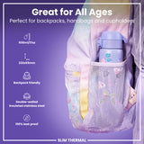 Slim profile fits most cupholders, backpack pockets, & lunch boxes.