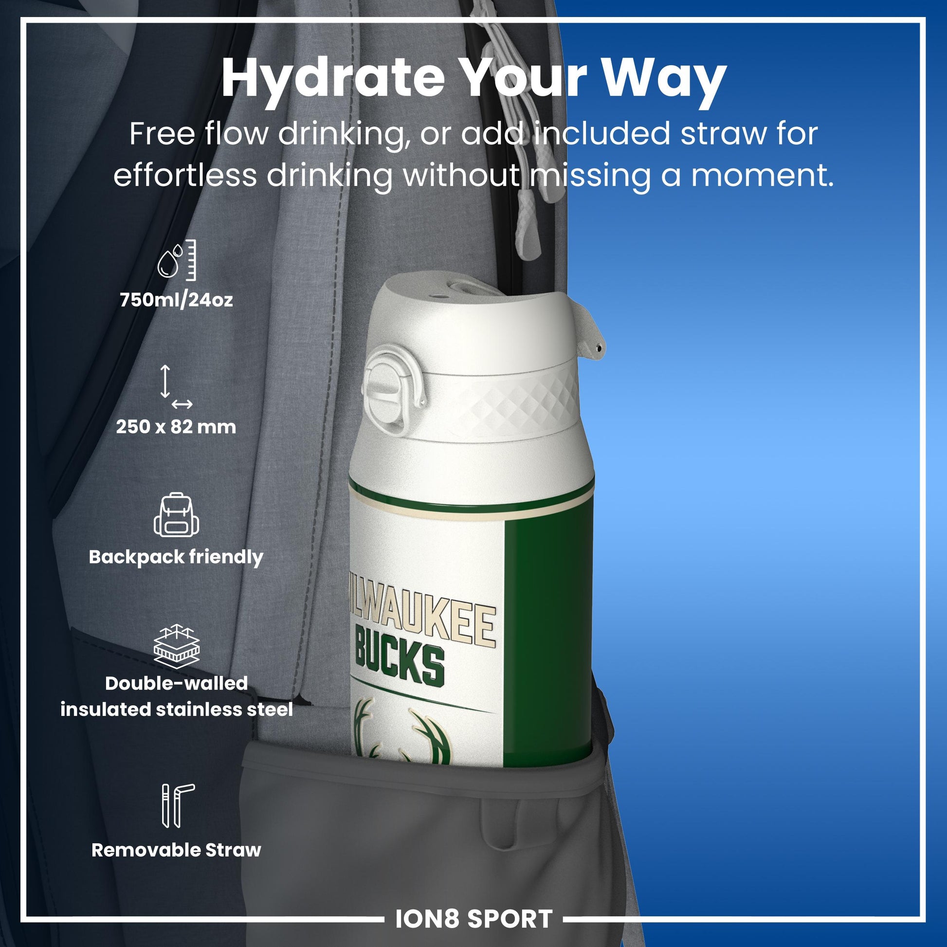 NBA x Ion8 Sports, Insulated Bottle, Milwaukee Bucks, 750ml (24oz)