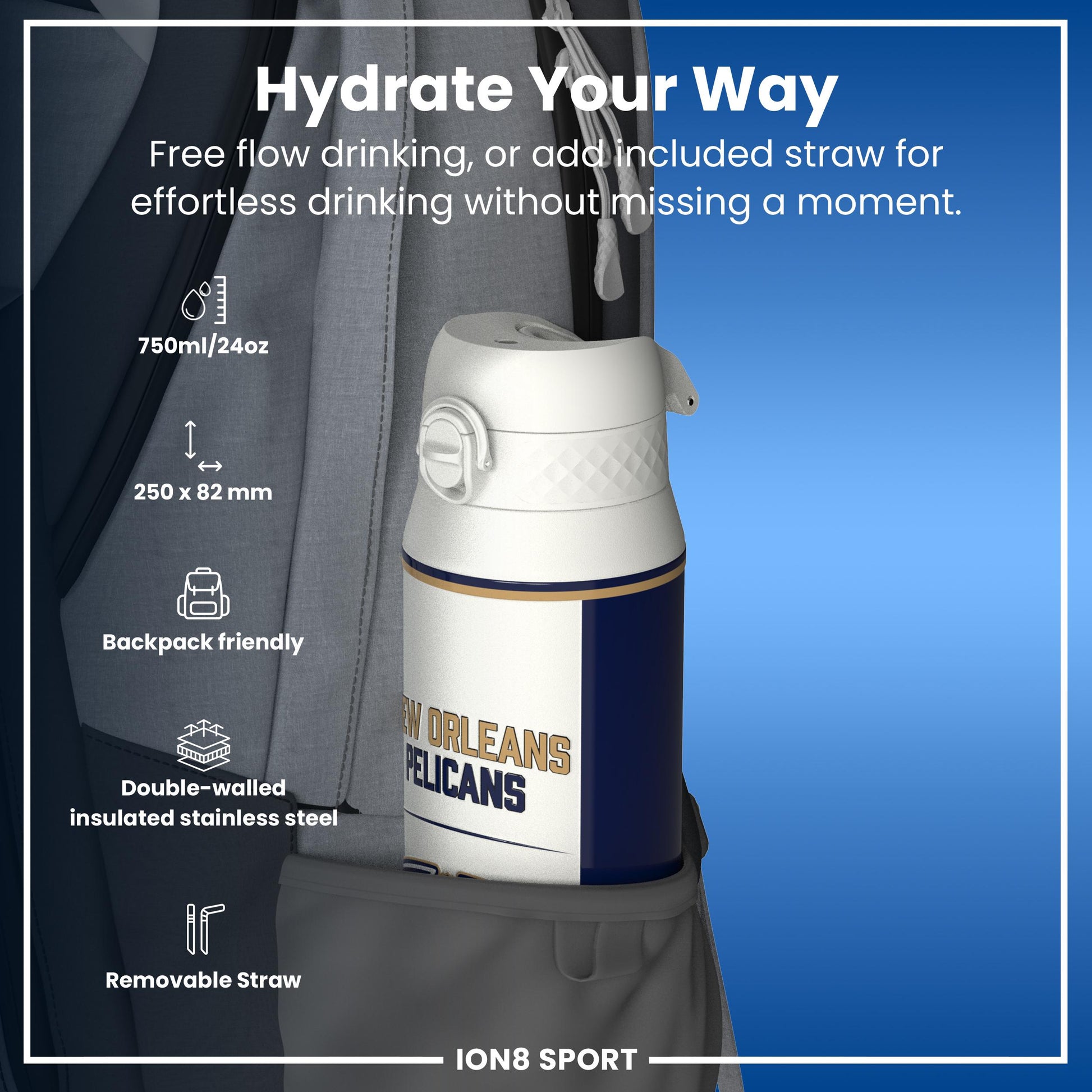 NBA x Ion8 Sports, Insulated Bottle, NOLA Pelicans, 750ml (24oz)